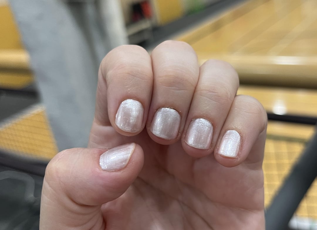 Only-Appointment-922 on August 18, 2024 3:11 pm This is the prettiest polish I have ever used. It looks stunning- exactly like a pearl in person. I am wearing a clear top coat which is Sally’s brand The first photo I did edit my skin around the nail and Brighten the photo The second and last photo are unedited, I had some brown dye in my nail bed that won’t come out 😅